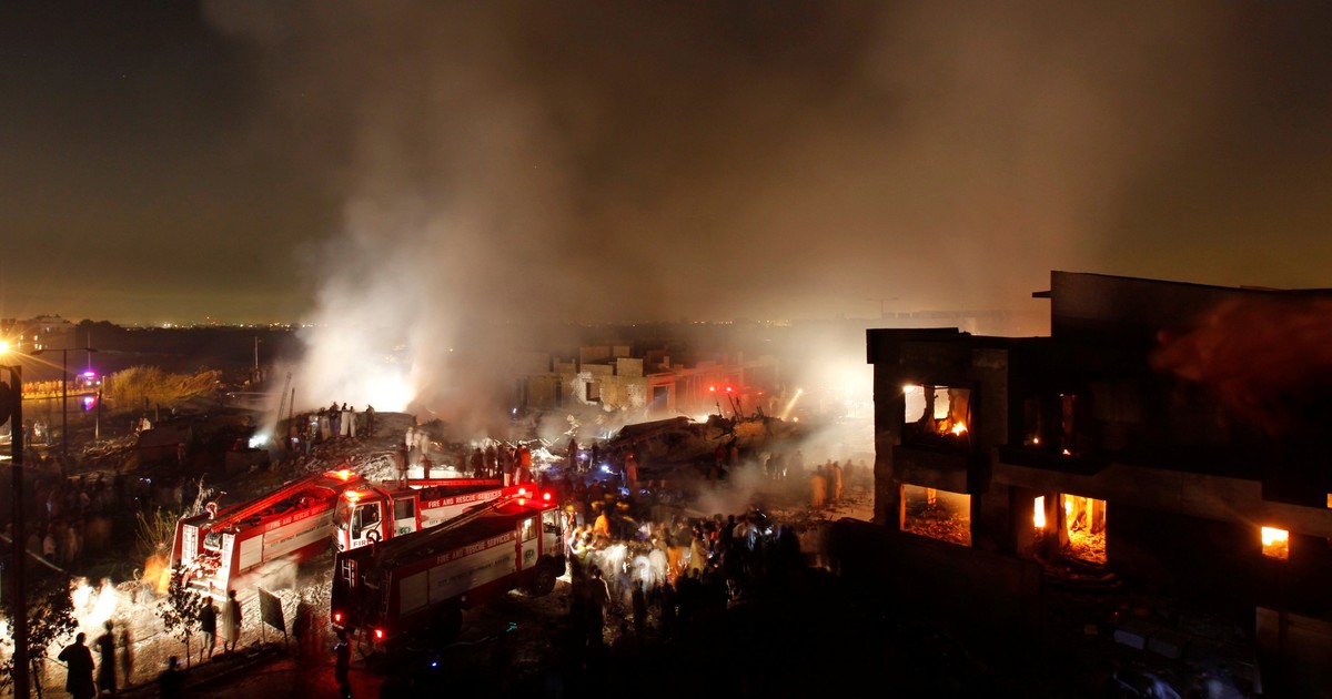 Самолет рухнул в пригороде Гульшан-е-Джохар, рядом с кварталами, где живут семьи пакистанских военных.