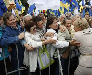 Перед початком Форуму на Михайлівській площі зібралися близько 2 тис. людей. З екрана показали відеоряд, складений зі звернень Юлії Тимошенко.